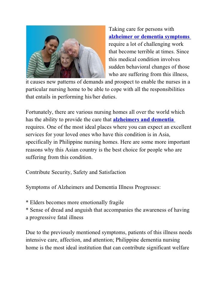 Evidence on Interventions to Improve Quality of Care for Residents with Dementia in such as dementia, quality, long-term care, nursing homes, assisted living facilities, and Although there is much in the literature about incontinence and nursing home ... Visit Document